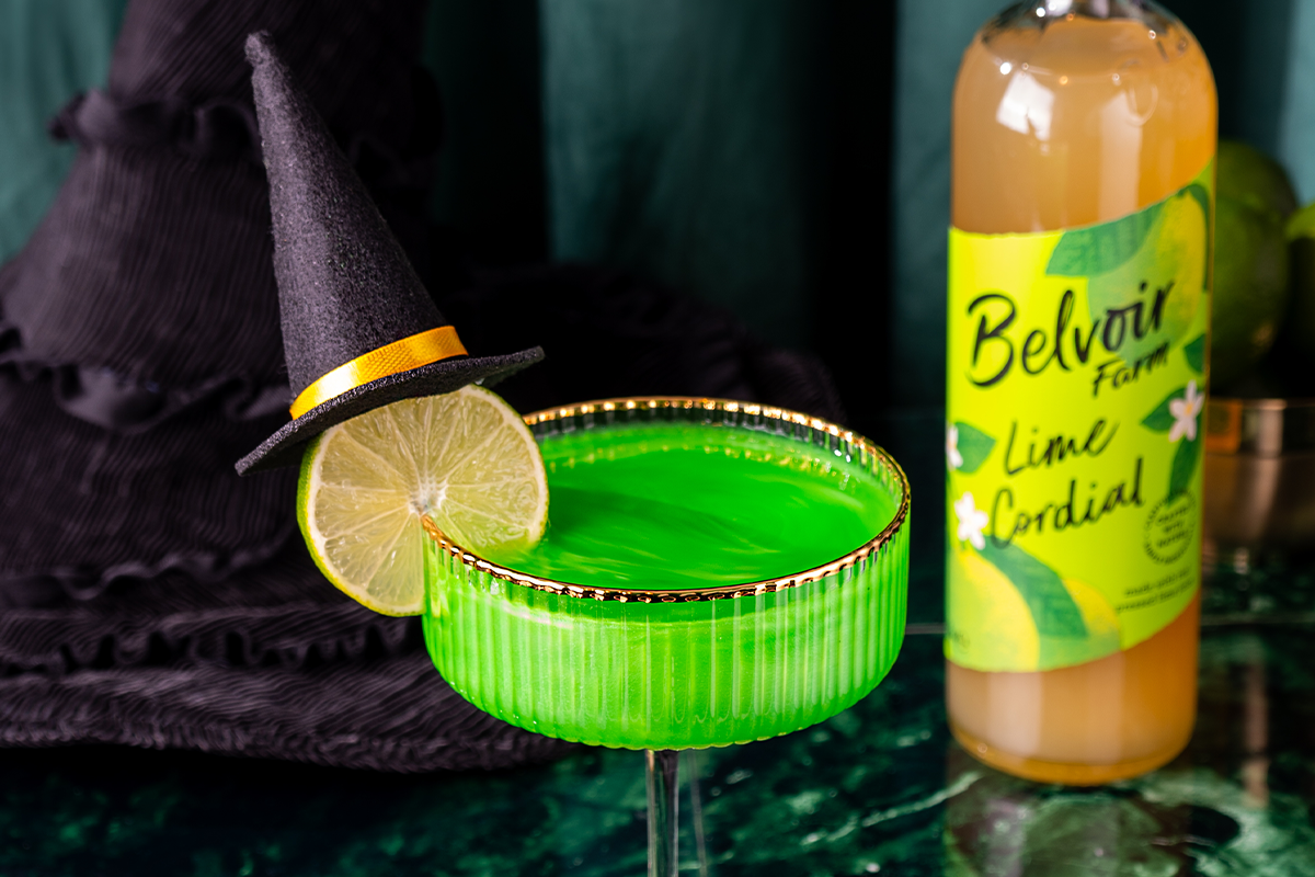 Add the gin, lime cordial, Midori and glitter to a cocktail shaker and shake.