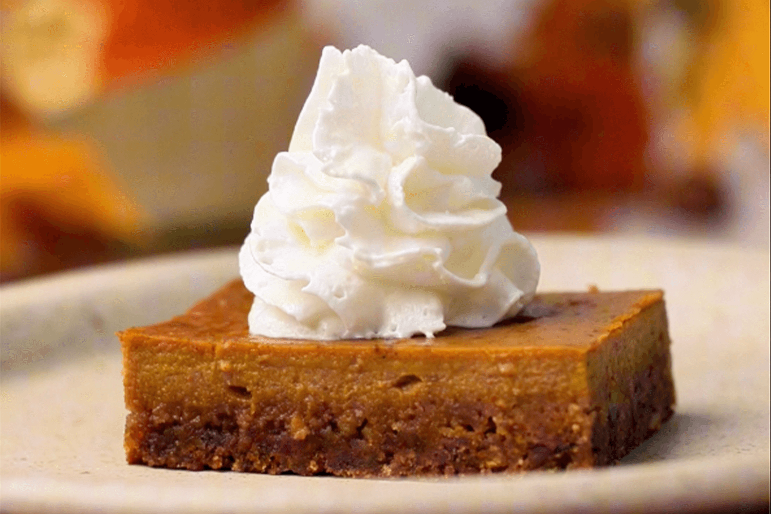 When done, remove from the oven and cool on a wire rack. Allow to cool completely, then cover and refrigerate for 2 to 3 hours. Remove the chilled bars from the pan by pulling up on the parchment paper. Cut into squares and serve with whipped cream and chopped pecans.