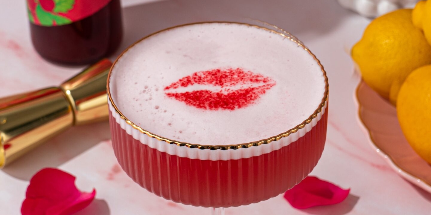 Mix the Belvoir Farm Raspberry and Lemon Cordial, pink gin, fresh lemon juice and aquafaba in a cocktail shaker.